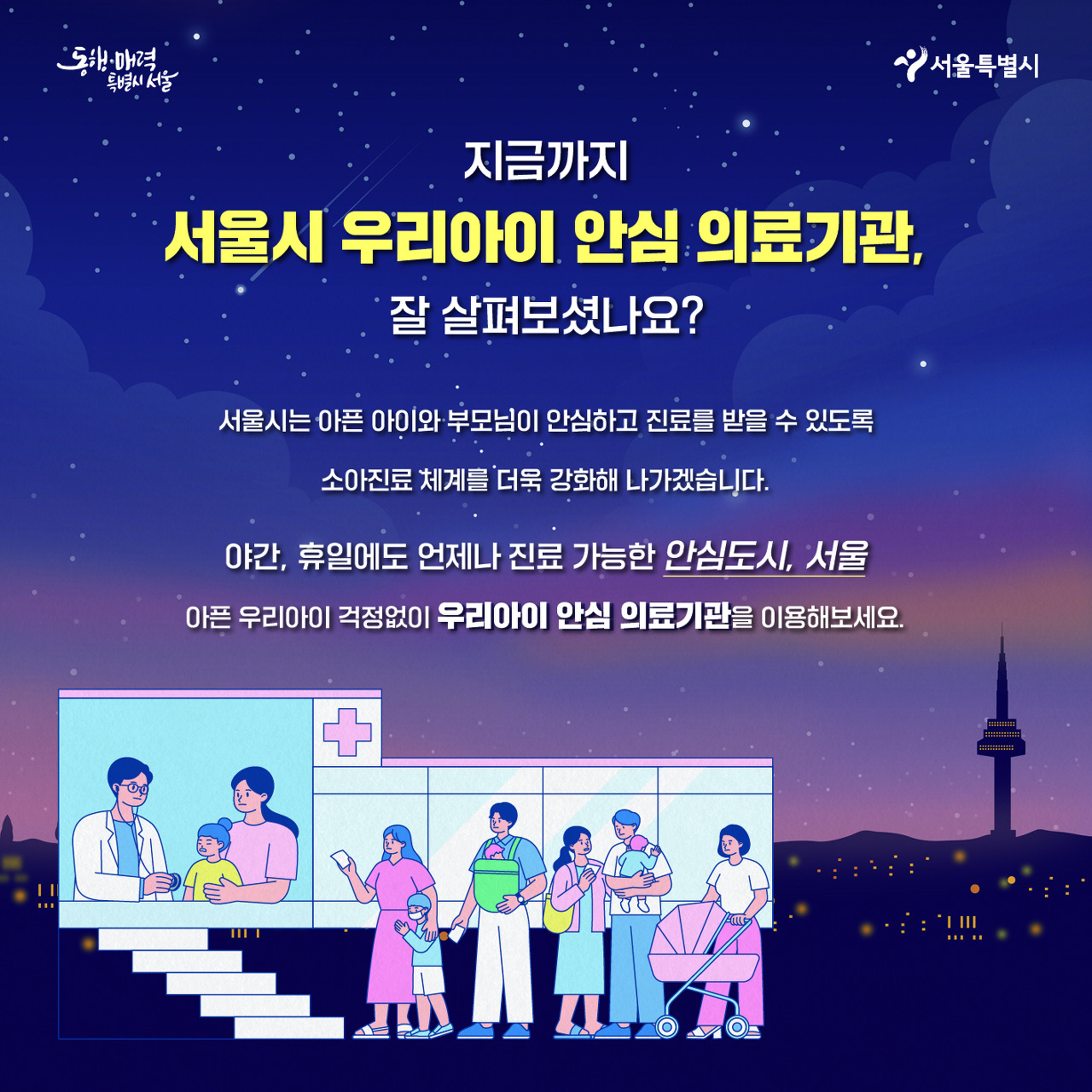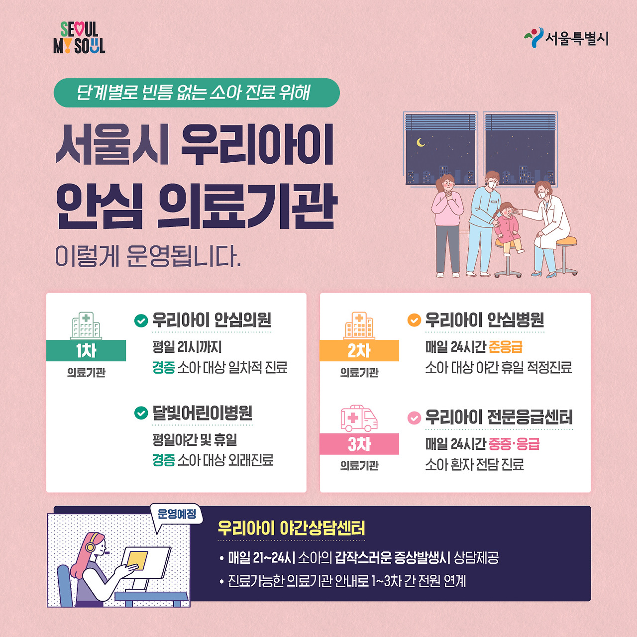 야간, 휴일에도 언제나 진료가 가능한 소아 안심도시, 서울!
