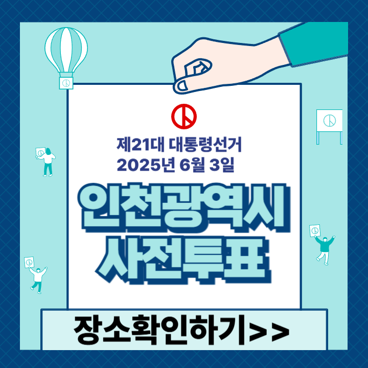 제21대 대통령선거(2025년 6월 3일) 인천광역시 유권자분들을 위한 사전투표소 정보 안내글입니다.