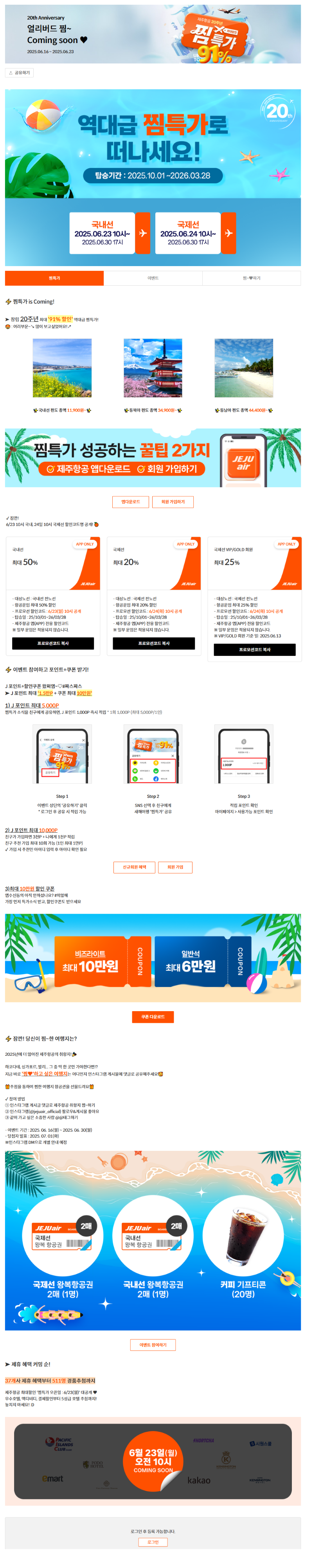 제주항공 찜 특가 최대 91% 할인