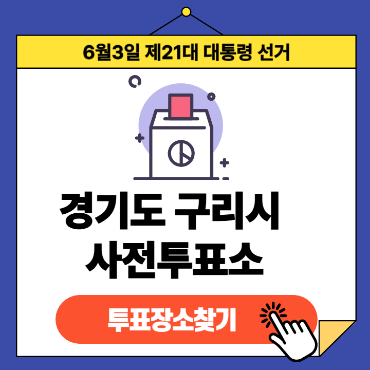 제21대 대통령선거(2025년 6월 3일) 경기도 구리시 유권자분들을 위한 사전투표소 정보 안내글입니다.