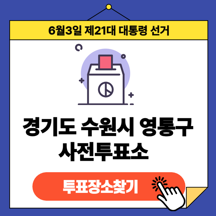 제21대 대통령선거(2025년 6월 3일) 경기도 수원시 영통구 유권자분들을 위한 사전투표소 정보 안내글입니다.