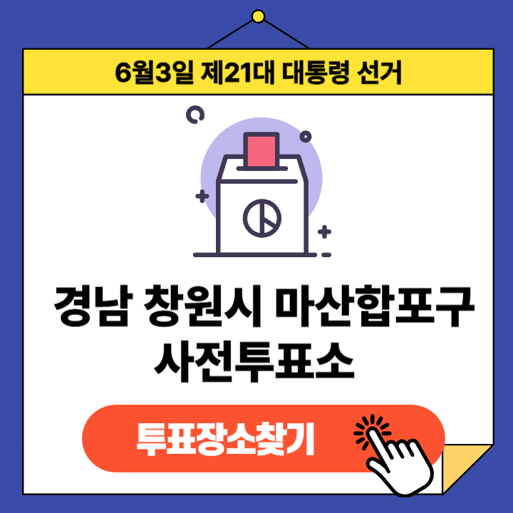 제21대 대통령선거(2025년 6월 3일) 경상남도 창원시 마산합포구 유권자분들을 위한 사전투표소 정보 안내글입니다.