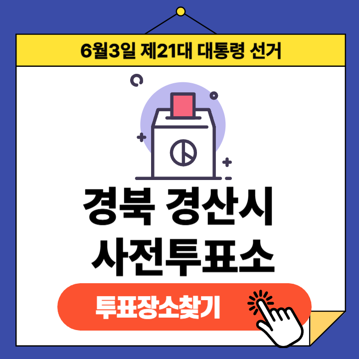 제21대 대통령선거(2025년 6월 3일) 경상북도 경산시 유권자분들을 위한 사전투표소 정보 안내글입니다.