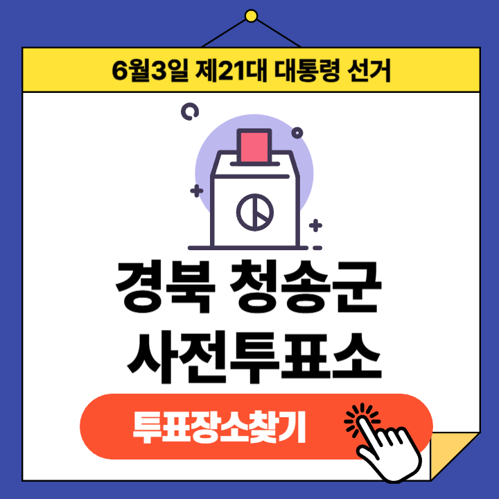 제21대 대통령선거(2025년 6월 3일) 경상북도 청송군 유권자분들을 위한 사전투표소 정보 안내글입니다.
