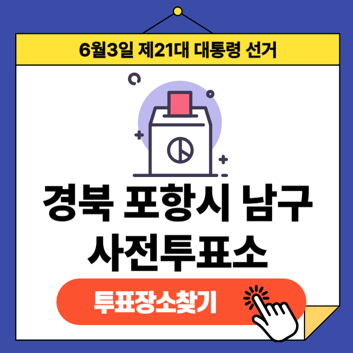 제21대 대통령선거(2025년 6월 3일) 경상북도 포항시 남구 유권자분들을 위한 사전투표소 정보 안내글입니다.