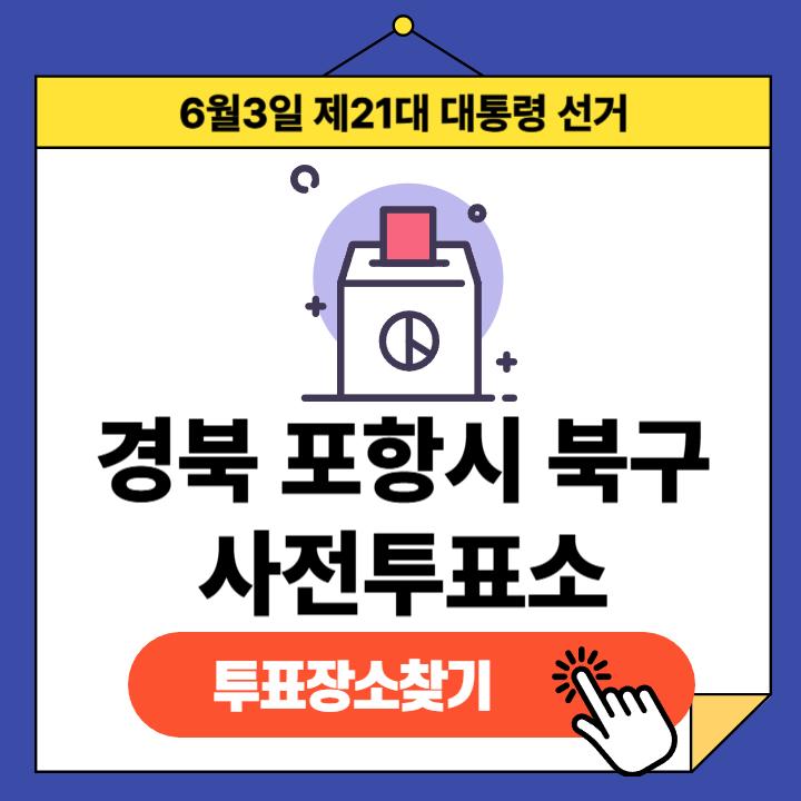 제21대 대통령선거(2025년 6월 3일) 경상북도 포항시 북구 유권자분들을 위한 사전투표소 정보 안내글입니다.