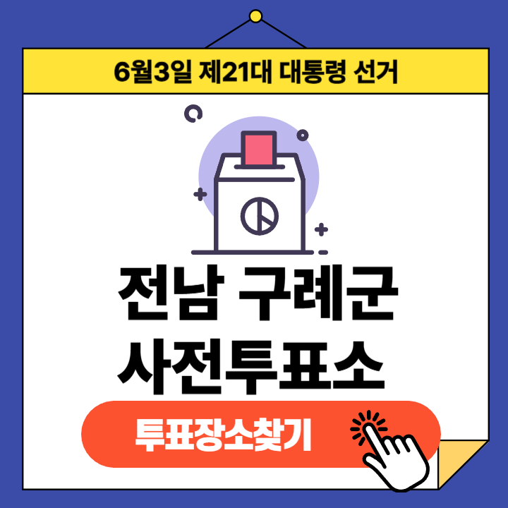 제21대 대통령선거(2025년 6월 3일) 전라남도구례군 유권자분들을 위한 사전투표소 정보 안내글입니다.
