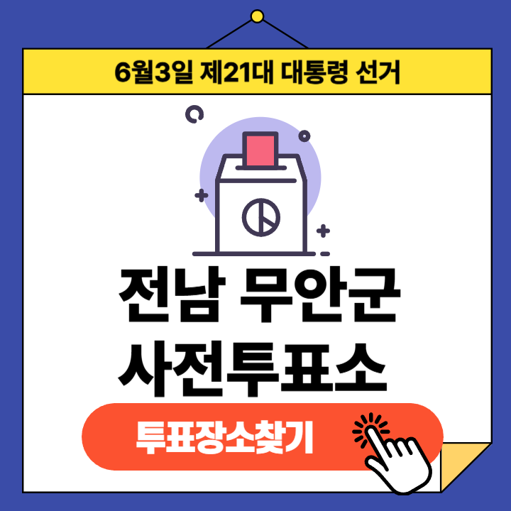 제21대 대통령선거(2025년 6월 3일) 전라남도 무안군 유권자분들을 위한 사전투표소 정보 안내글입니다.