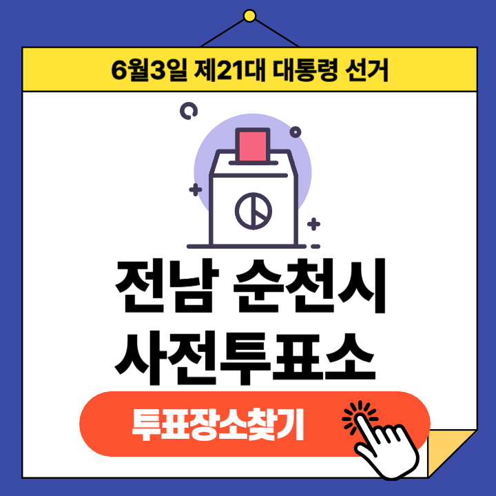 제21대 대통령선거(2025년 6월 3일) 전라남도 순천시군 유권자분들을 위한 사전투표소 정보 안내글입니다.