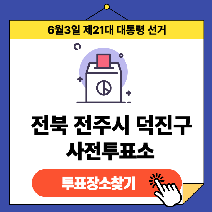 제21대 대통령선거(2025년 6월 3일) 전북특별자치도 전주시 덕진구유권자분들을 위한 사전투표소 정보 안내글입니다.
