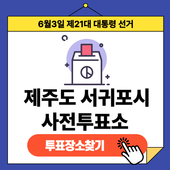 제21대 대통령선거(2025년 6월 3일) 제주특별자치도 서귀포시 유권자분들을 위한 사전투표소 정보 안내글입니다.