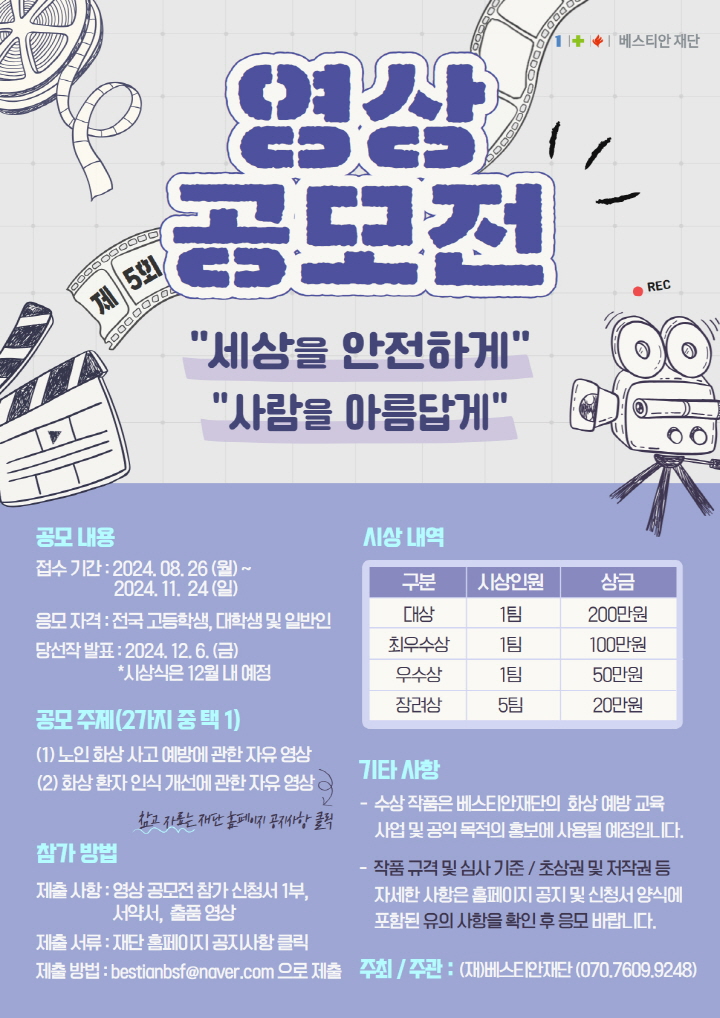 - 수상 작품은 베스티안재단의 화상 예방 교육 사업을 위한 콘텐츠로 사용될 수 있음.