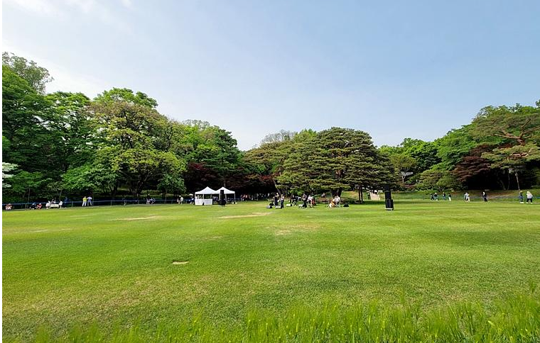 조용하고 고풍스러운 분위기의 잔디밭과 나무들. 정말 아름다웠어요. 사람들이 돗자리를 펴고 잠시 쉬기도 하고, 사진도 많이 찍더라고요.