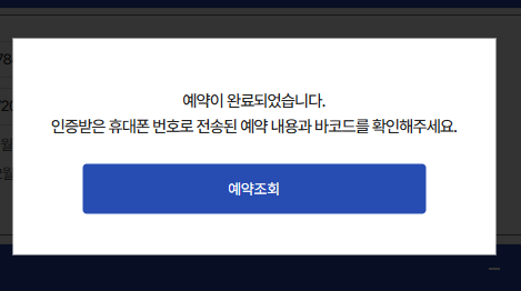 휴대폰 인증 또는 간편인증을 통해 본인 인증을 완료하면 예약이끝나는데요.