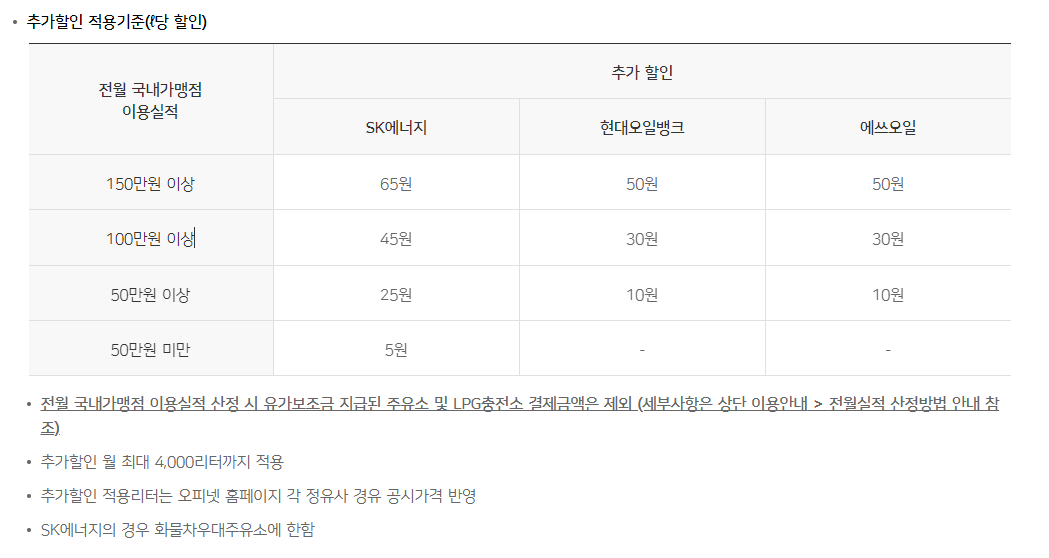 ※ 추가 할인은 월 최대 4000L까지 적용되는 점 참고하시기 바랍니다.